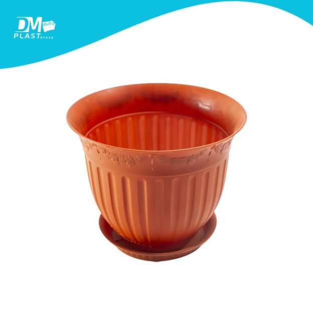 Fabricada en plástico durable, incorpora un plato que ayuda a contener el drenaje, protegiendo superficies y facilitando el cambio de plantas o flores. Su formato compacto permite colocarla en baldas, ventanales o rincones del hogar sin ocupar demasiado espacio.